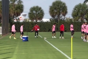记者表示:“迈阿密国际队长梅西一如既往地在苏亚雷斯的陪伴下踏上训练场。由于球队周三晚刚结束与洛杉矶FC的激战,周五的训练课将以恢复性训练为主——这是赛后首堂训练课。”