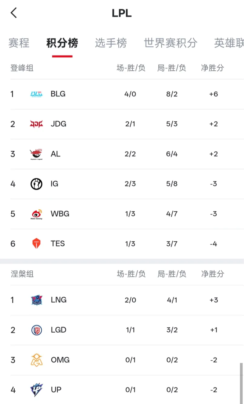 LPL战队排名变化:iG凭两胜升至第四,WBG和TES位列第五、六